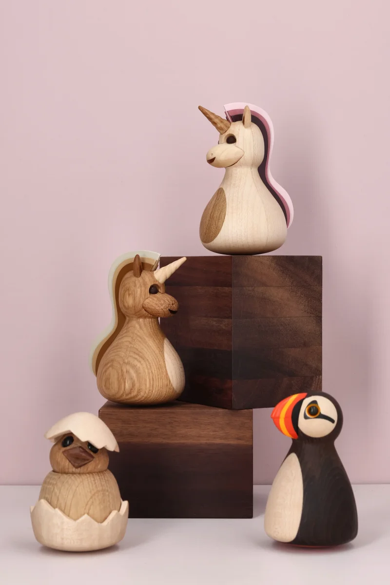 Chick från Spring Copenhagen är en söt och nyfiken liten träfigur som just tagit sina första steg ut i världen. Med sin charmiga äggskalsklädsel och storögda blick sprider hon en känsla av vår, glädje och lätthet i hemmet.