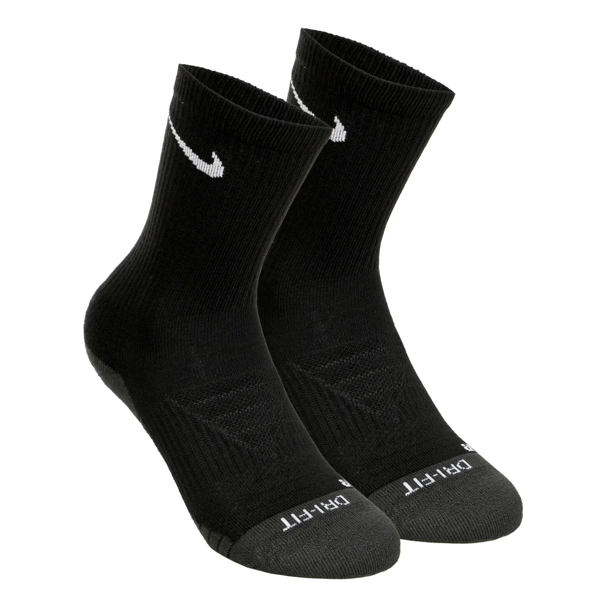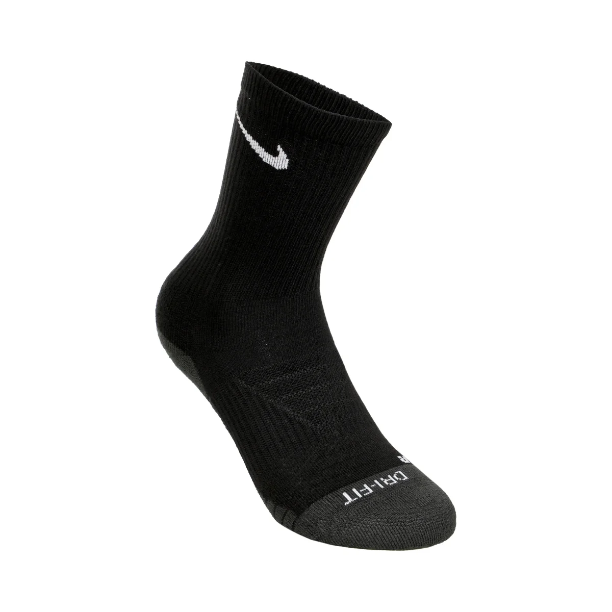 Nike Everyday Max Cushioned Training Crew Socks (3 par) KOMFORT OCH STÖD. Slå dina rekord med Nike Everyday Max Cushioned Socks. Den tjocka frottésulan ger extra komfort under fotövningar och tyngdlyftning. Friktionsgarnen i fotbädden förhindrar att foten glider. Dri-FIT-tekniken håller dig torr och bekväm. Den tjocka frottésulan garanterar komfort och stötdämpning. Högfriktionsgarner i fotbädden förhindrar att foten glider. Mesh på baksidan av foten förbättrar ventilationen. Crew-silhuetten ger en bekväm passform i ankelområdet. Den anatomiska designen för höger och vänster ger en naturlig passform. Mer information76 till 90% polyester/0 till 13% bomull/8 till 9% nylon/2% elastanMaterialets procentandel kan variera. Exakta uppgifter finns på etiketten.MaskintvättImporterad100 % TEXTIL
