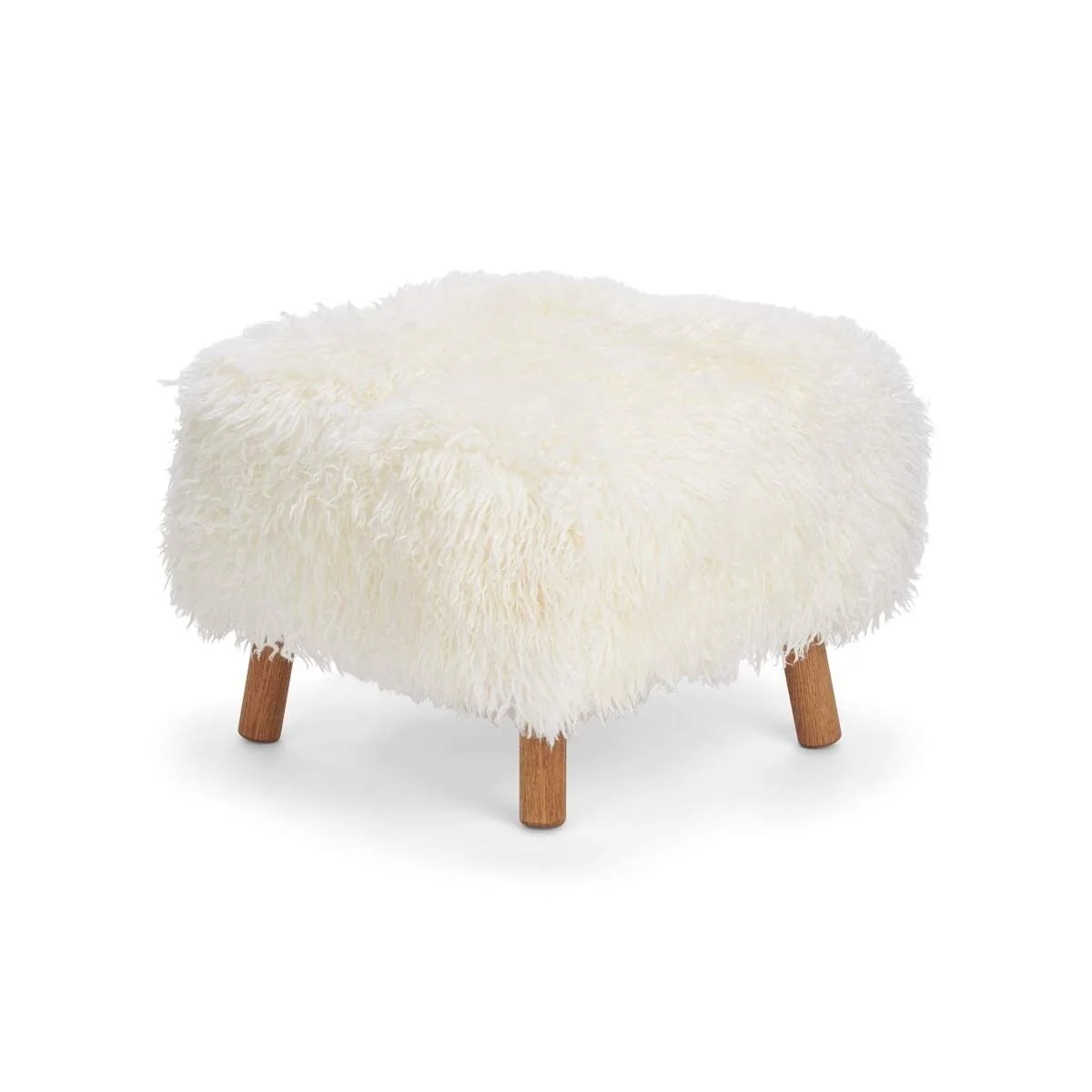 Lägg upp fötterna och låt den naturliga lugnet sprida sig med denna Emily fotpall. Pallen är klädd i det samma utsökta lockiga fårskinnet från Tibet som Emily fåtöljen och finns med stabila ben i ek, valnöt eller svartlackerad bok, vilket ger en fin kontrast till det mjuka fårskinnet.