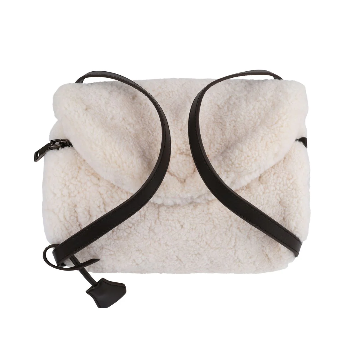 Med sin originella cylinderform kombinerar Gloria väskan mjukt, äkta fårskinn med bruna lädersidor för en elegant kontrast. Med en avtagbar axelrem erbjuder den flexibel styling och vardagskomfort. En karaktärsfull accessoar som tillför enkel elegans till varje look.