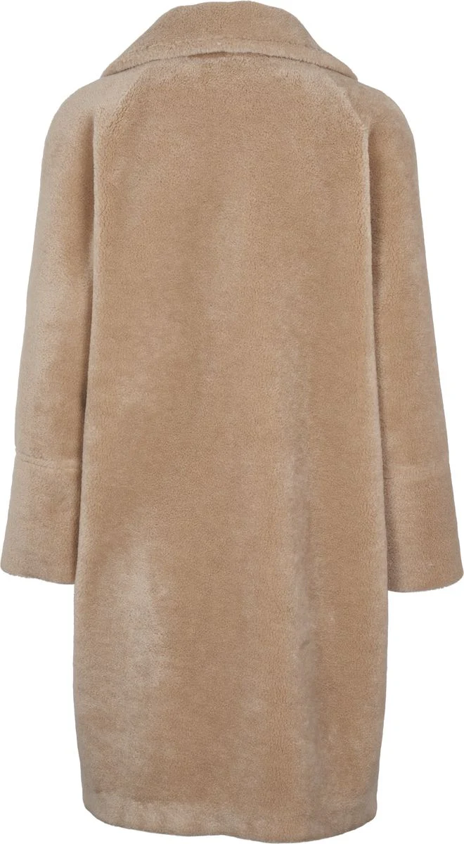 En lång fårskinnskappa av mjukaste nyzeeländskt fårskinn med polyesterfoder. Den har en rustik men ändå en mycket mjuk stil. Själva pälsen är korthårig och lockig. Dessutom är den korthåriga pälsen också motståndskraftig mot smuts och damm. Två stora utanpåfickor gör kappan snygg och enkel. Kragen är bred och tillför kappan tidlös klassisk elegans.