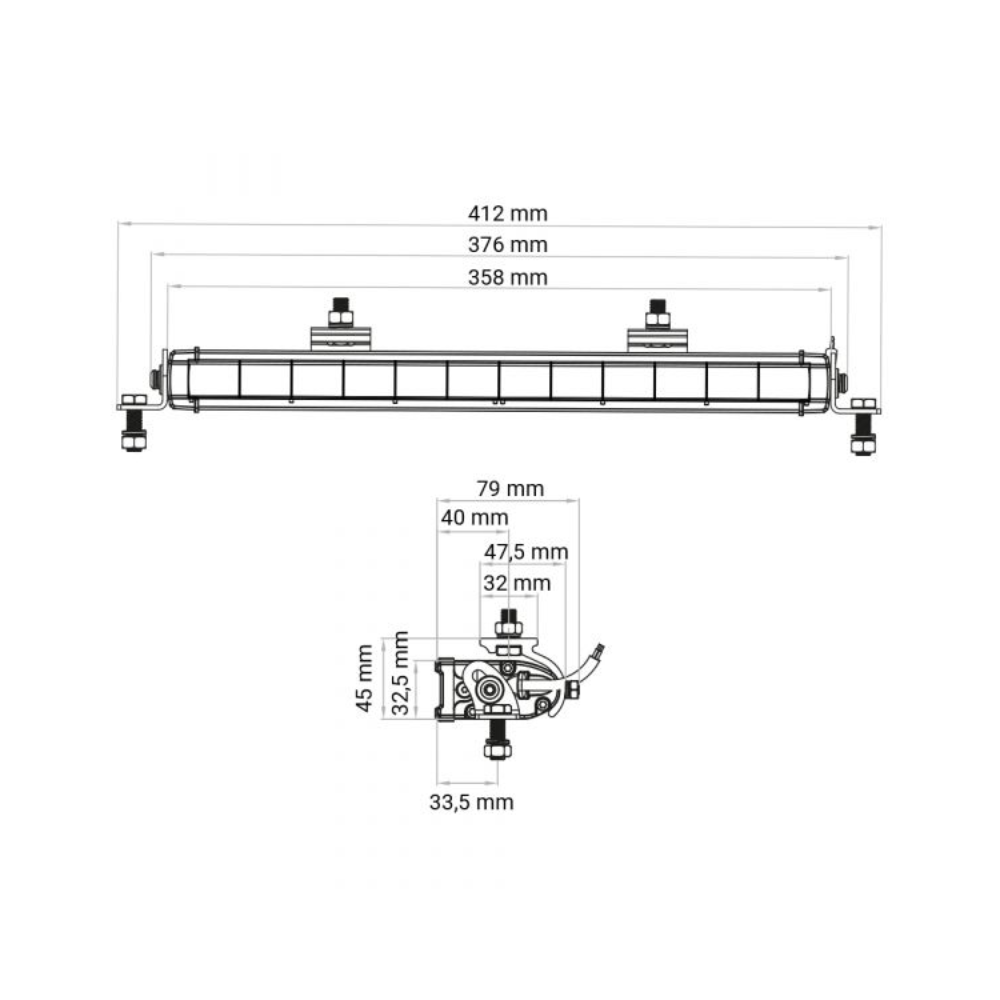 Arbetsljusramp som ger 3186 faktiska lumen, 60W. Rampen är lättplacerad och passar till olika typer av arbetsfordon och maskiner. Huset är av pulverlackerad aluminium. Rampen har en mörktonad lins av slagtålig polykarbonat som ger lång livslängd. Fästen för sidomontering och mittmontering medföljer. Har kabel med DT-kontakt.