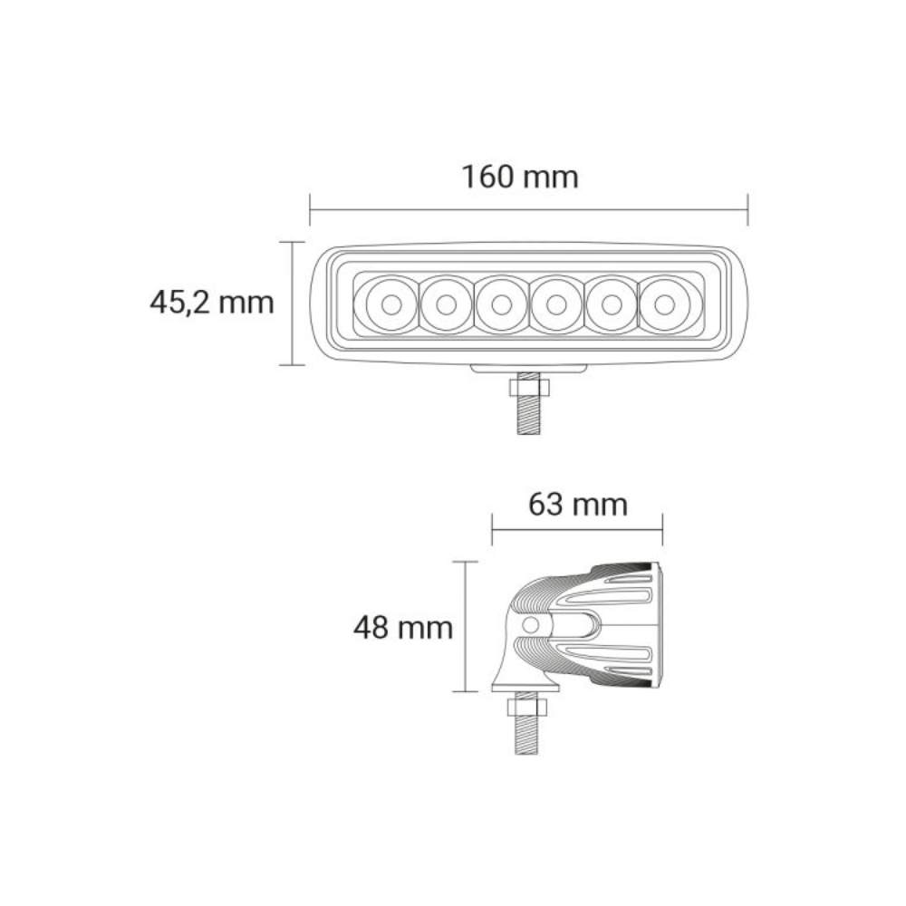En avlång arbetsbelysning som ger totalt 1320 lumen vid en förbrukning av 18W. Med sin avlånga design och 6 högpresterande dioder är den optimal för arbetsändamål. Den är konstruerad med ett kraftigt gjutet aluminiumhus för att säkerställa hållbarhet och tålighet även under tuffa förhållanden. Lampan passar perfekt för olika typer av arbetsfordon och maskiner. Avlång arbetsbelysning levereras med en kort kabel som har en DT-kontakt för enkel och smidig installation.