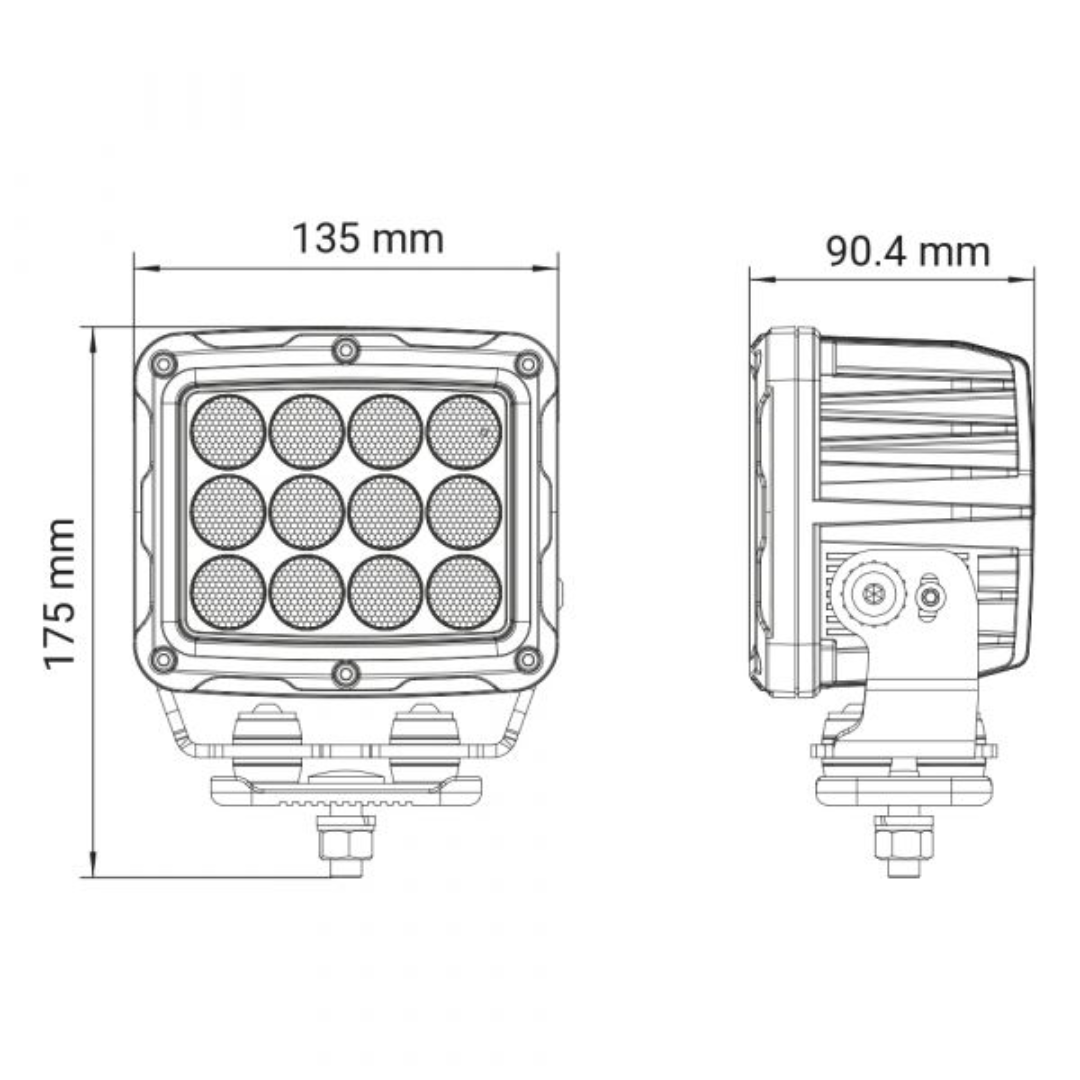 En Heavy Duty arbetsbelysning som ger 12 000 faktiska lumen och har en effekt på 180W. Arbetsbelysningen har kompakta mått och kraftfullt ljus. Klusterdioder och avancerad linsoptik ger ett mycket starkt och brett ljus med en spridning på 90 grader. Inbyggd temperaturkontroll skyddar dioderna från överhettning. Med kraftiga gummibussningar i bygeln klarar heavy duty arbetsbelysningen av vibrationer och tuffa miljöer. DT-kontakt är integrerad i huset.
