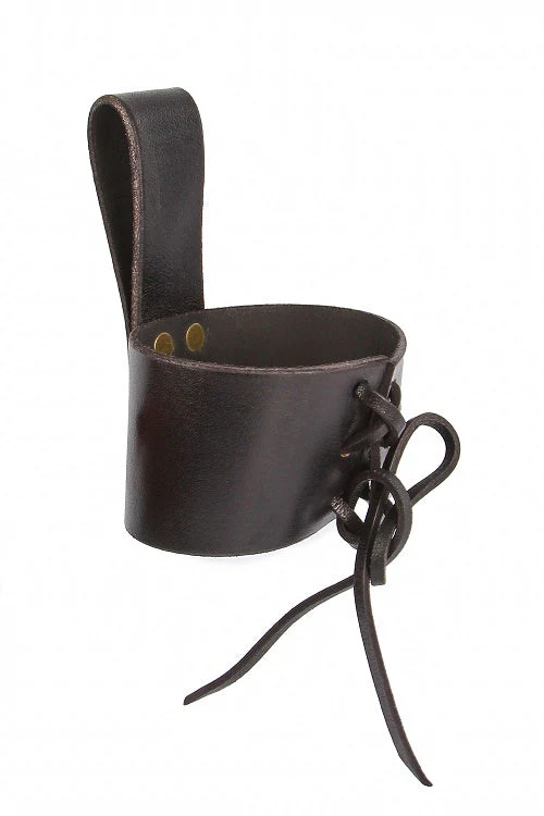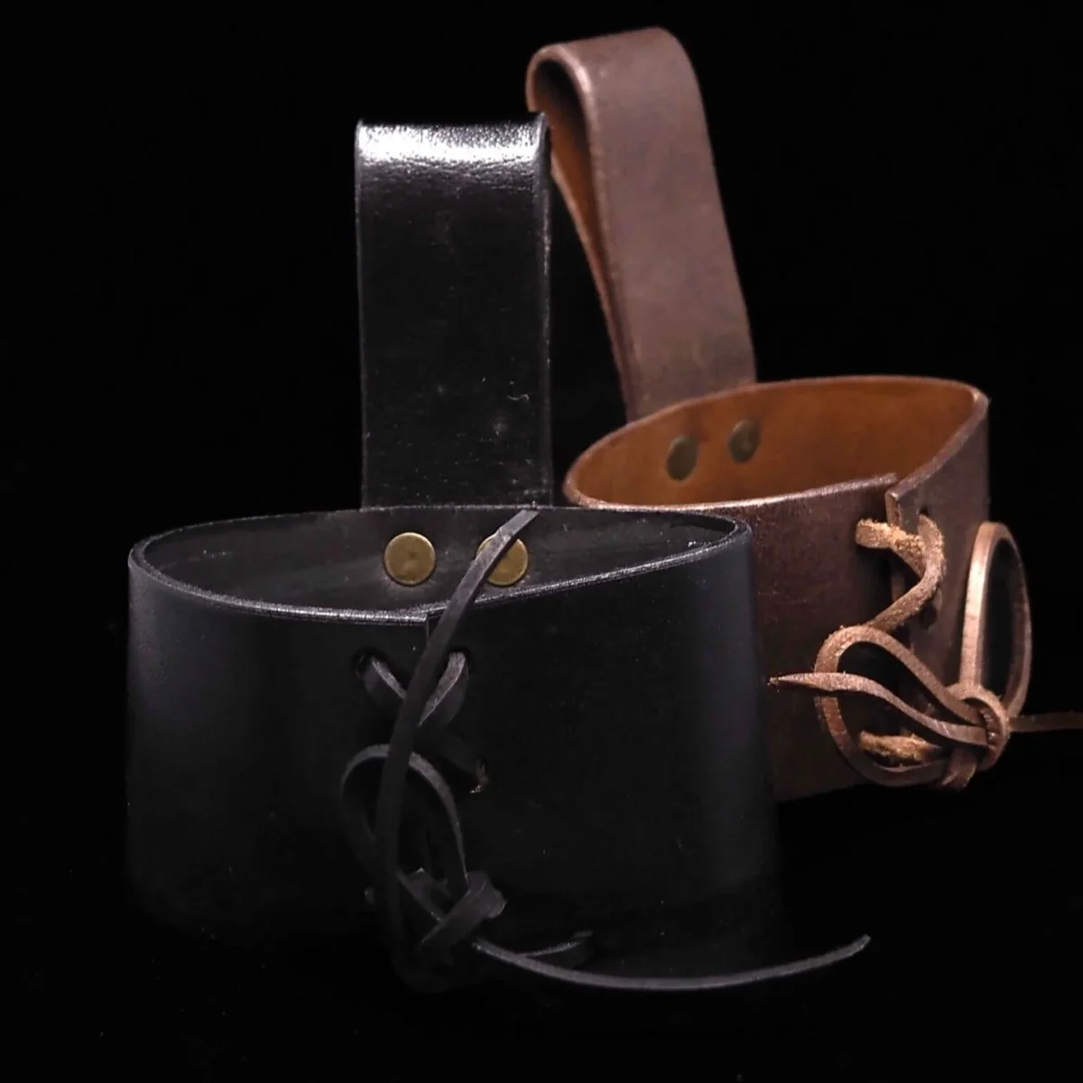 Detta är en praktisk och snygg hornhållare till t.ex. bältet. Hållaren är gjord i tjockt och hållbart läder. Snörningen gör den väldigt anpassningsbar och kan ställas efter storlek och form på ditt horn. Denna modell passar för de flesta horn från 800ml upp till 2000 ml. Diameter från 100mm