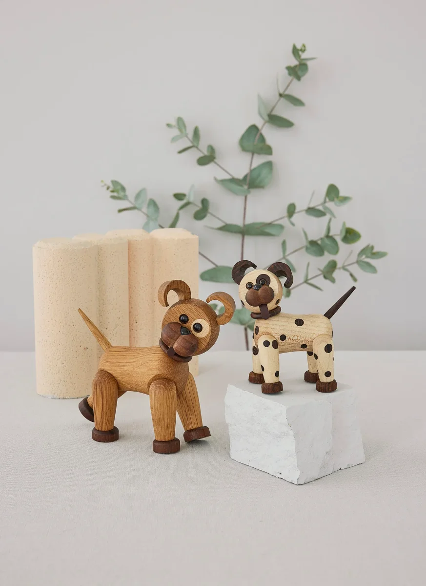 Joy är designad av Chresten Sommer och kombinerar dansk designtradition med modern lekfullhet. De söta prickarna ger honom ett unikt uttryck som gör honom omöjlig att motstå. Han är en liten figur med stor energi – en ny bästa vän för dig som älskar hundar och uppskattar gediget hantverk.