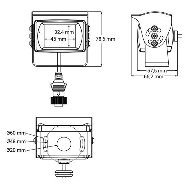 Högupplöst färgkamera med 110 grader siktvinkel, 12V. Kameran är försedd med 18st IR-dioder och återger bild i mörker. Har en inbyggd mikrofon och 4-polig skruvkontakt. Upplösningen är 600 TVL (linjer).