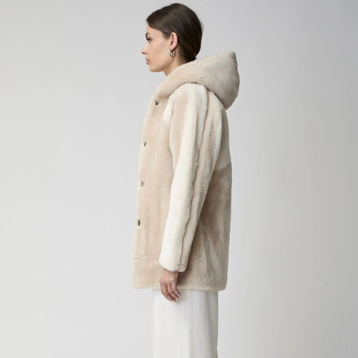 Leah är en snygg och unik jacka framställd i dubbelt fårskinn med en fantastiskt mjuk in- och utsida. Dold knäppning och två osynliga fickor fram.