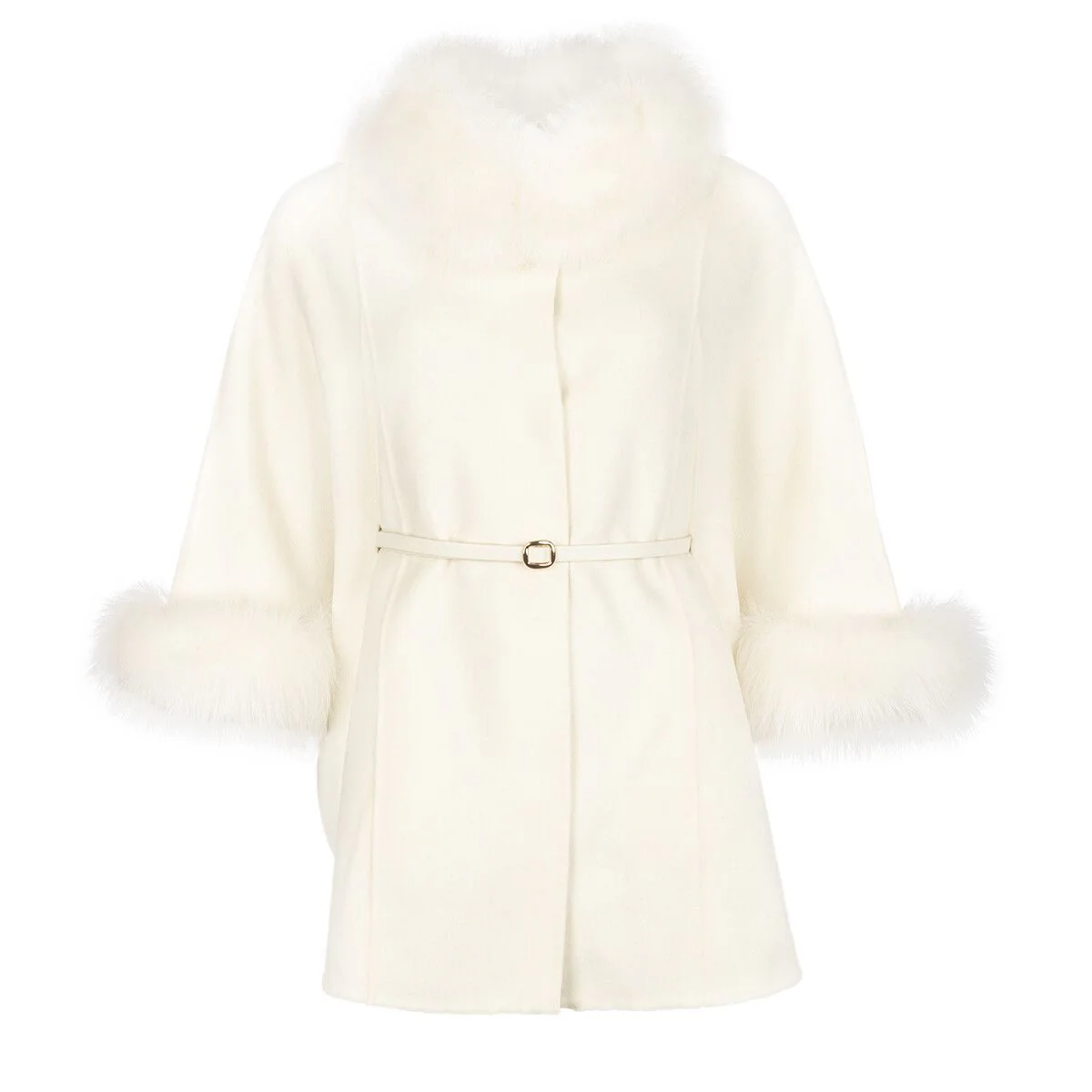 Vi presenterar Lorraine Poncho, en lyxig design tillverkad av en mjuk ullblandning och förfinad med eleganta rävpälsdetaljer. Denna stilfulla poncho levereras med ett matchande bälte, så att du enkelt kan skapa en smickrande, markerad midja.