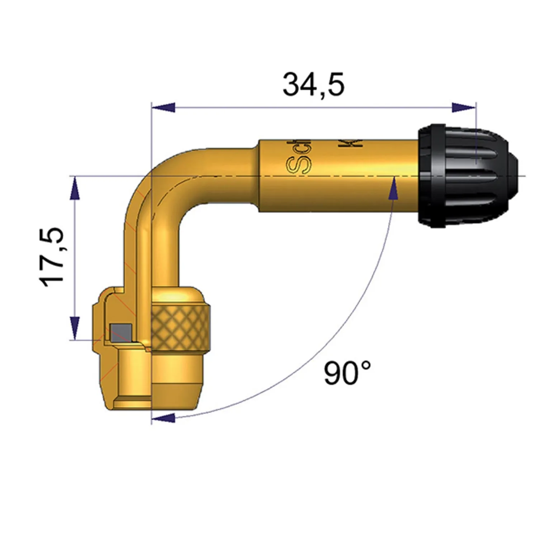 LV-ventil böjd 34,5 mm B90GR är en högkvalitativ förlängare som förenklar åtkomsten till svåråtkomliga ventilpositioner. Med en längd på 34,5 mm och en 90 graders böjning, är den idealisk för användning på lastbilar, bussar och andra fordon med däck där ventilerna är svåråtkomliga. Tillverkad för att säkerställa hållbarhet och pålitlighet under alla förhållanden.