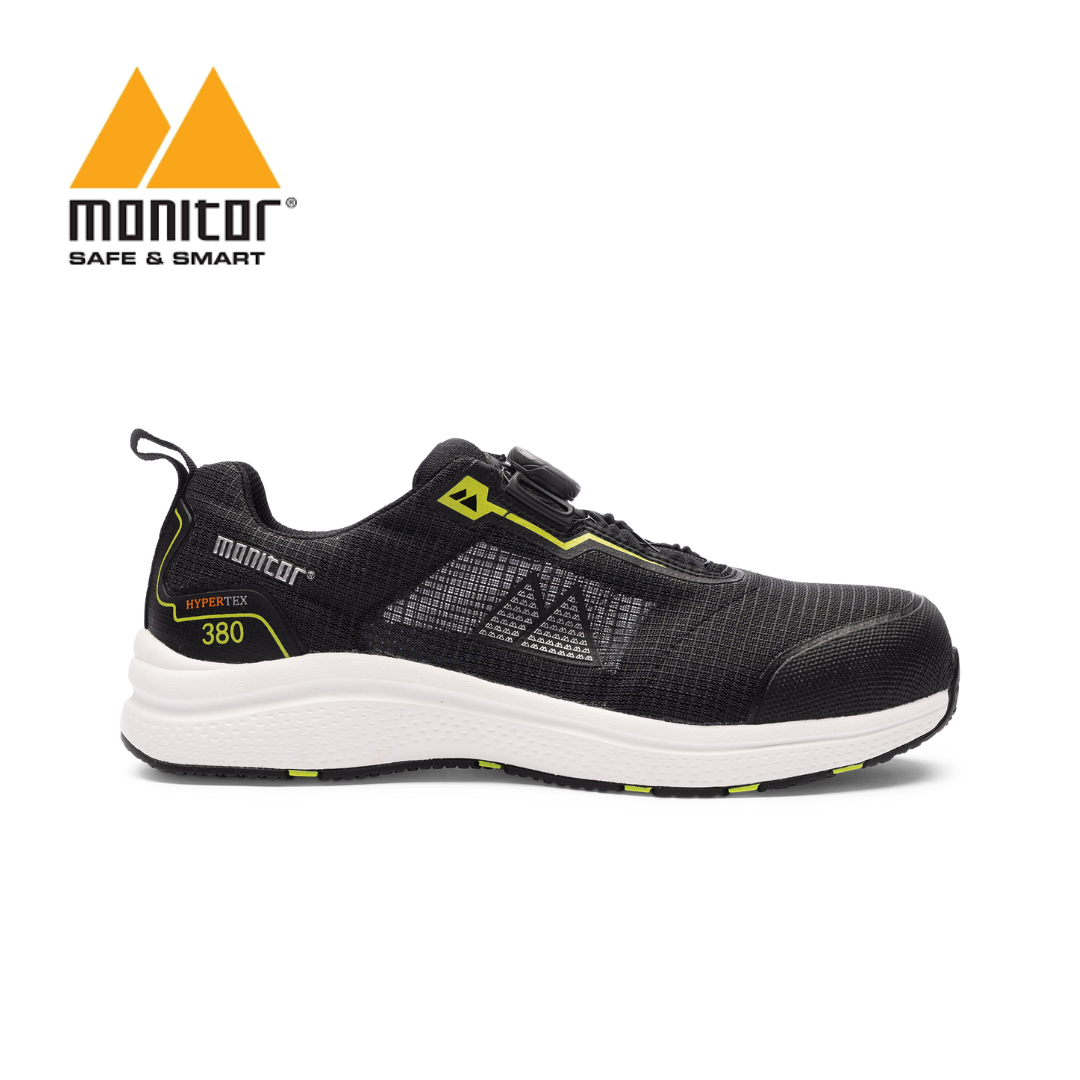 Monitor introducerar deras serie fjäderlätta skyddsskor för lager, industri samt lättare bygg- och anläggningsarbete. Skyddssko Three 100 Eighty lever upp till sitt namn genom att väga endast 380 gram, samtidigt som den är utrustad med både en aluminiumtåhätta och ett Pantzar spikskydd för maximal säkerhet.