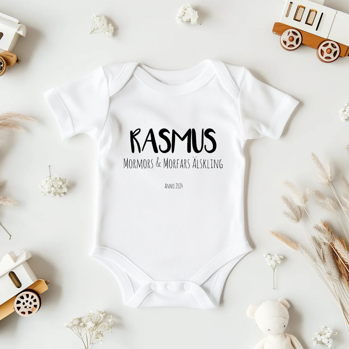 Personlig body till mormor och morfars älskling! En stilren och superfin body med texttryck som passar perfekt till en liten raring. Perfekt välkommen till världen-present!