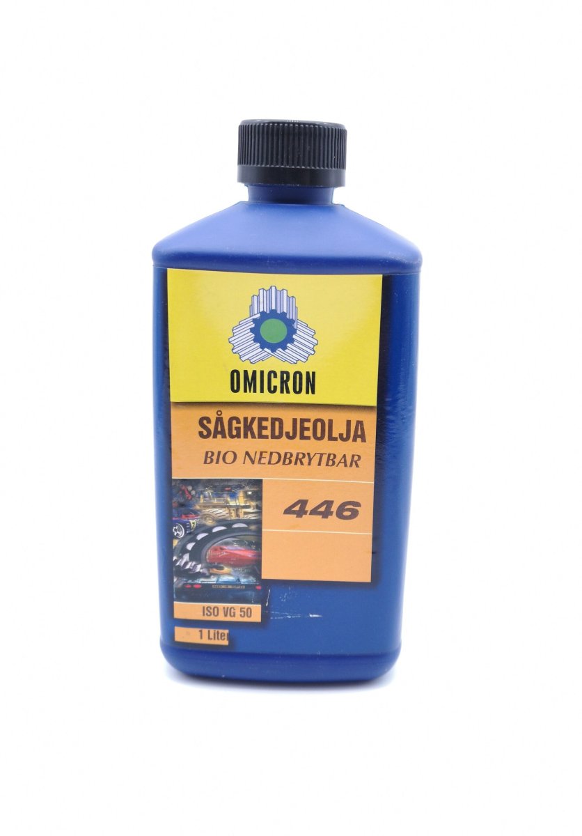 Sågkedjeolja framtagen av speciellt anpassade vegetabiliska oljor och till 100% biologiskt nedbrytbar. Är även utvecklad för smörjning av alla typer av sågkedjor, Omicron 446 Kedja Bio Superior Adhesive olja är också mycket lämplig för smörjning av gejder och transportkedjor. De enastående smörjegenskaper och dess vidhäftning ger mycket låg friktion och slitage.