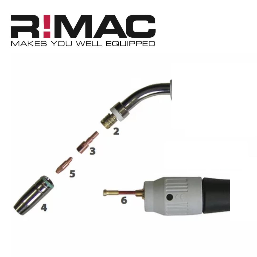 Gaskåpa Konisk M15 är en pålitlig slitdel för din MIG-svets, motsvarande nr 4 på bilden.