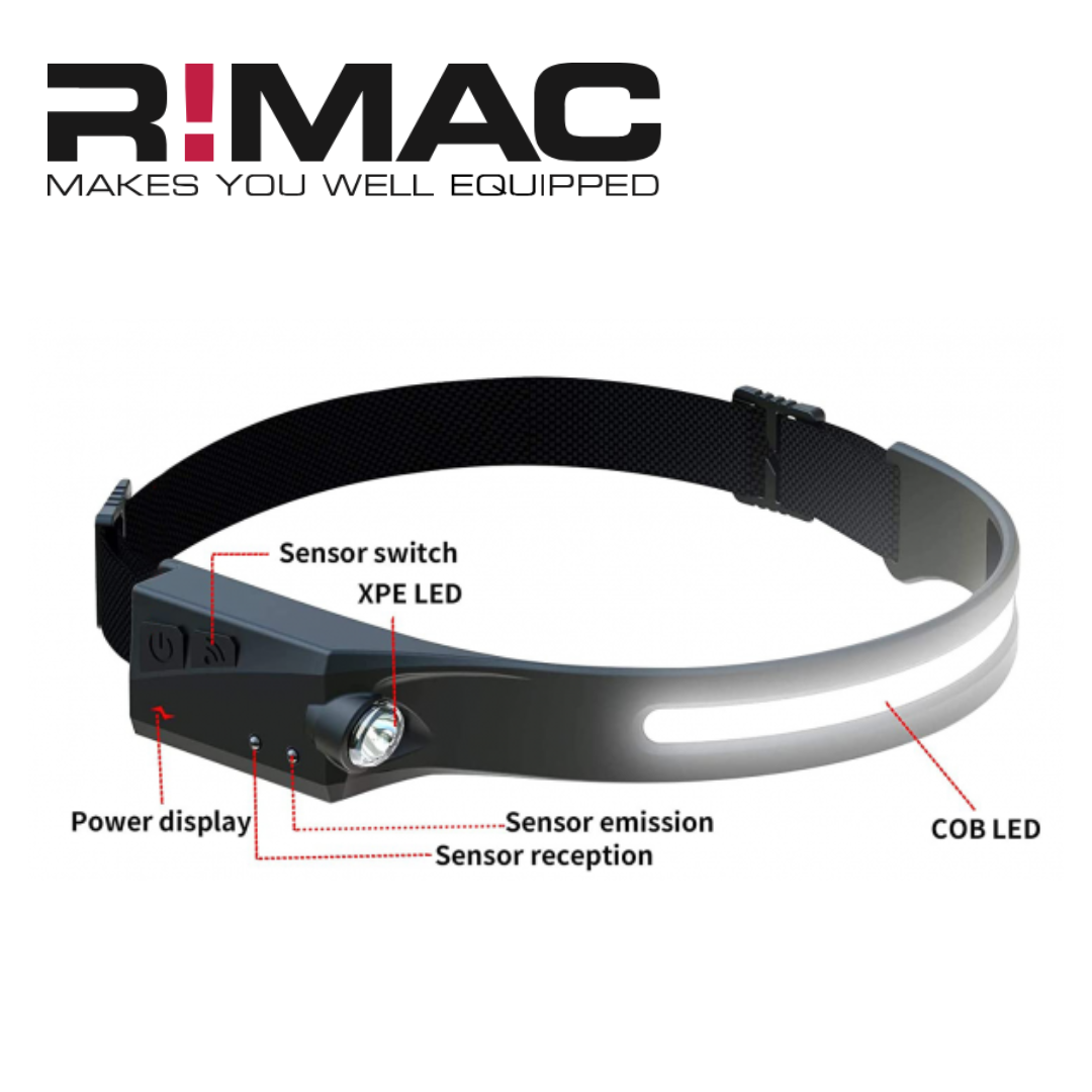 R!MAC Widespot pannlampa med COB och XPE LED för 350 lm ljusstyrka. Svängd design med 230° bred ljusbild, handsensor och USB-C-laddning. IPX4-klassad.