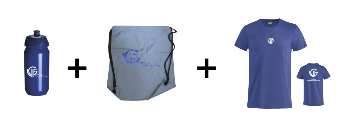 VGF’s Startkit 2025 innehåller vattenflaska, gympapåse + t-shirt gjord av bomull.