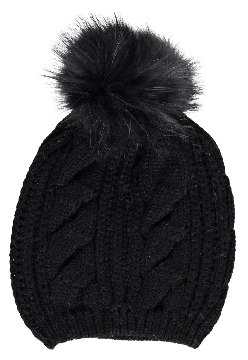 Snygg och moderiktig mönstrad mössa med stor tofs av den mjukaste päls. Tätt stickad för bästa komfort och passform. Gjord i äkta ull som inte bara värmer men även andas och fungerar värmereglerande.