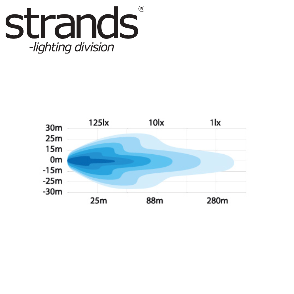 - 1 LUX @ m High beam: 280 Low beam: 163