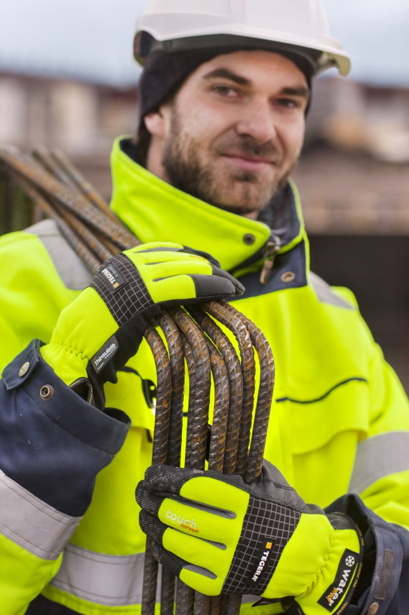 Ergonomisk, vattentät köldisolerande handskar i Microthan+® med touchscreen-funktion. Thinsulate™ och invändig fleece håller kvar kroppsvärmen. Slitstarkt Microthan®+ syntetläder. Bra grepp på hala ytor tack vare diamant greppmönster. Ovanhand i gul varselfärg ger extra skydd under mörka förhållanden. Manchett med 360° resår för bättre passform.