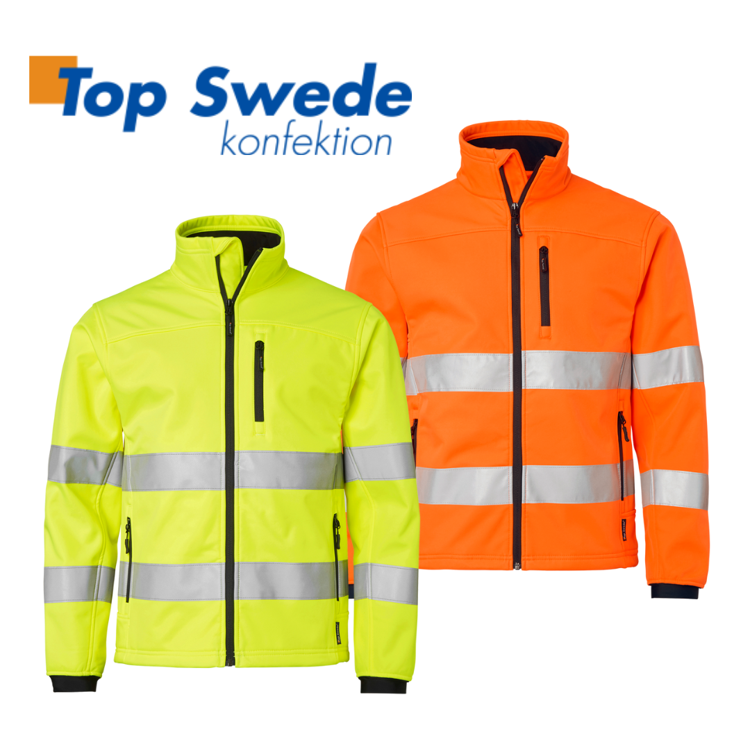 Softshelljacka varsel med hel dragkedja och kedjeskydd. En bröstficka och två framfickor med dragkedja. Softshelltyget består av 3 lager som är laminerade. Elastiskt yttertyg med ett membran som är vindtätt och starkt vattenavvisande. Innertyg av värmande fleece. EN ISO 20471 klass 3.
