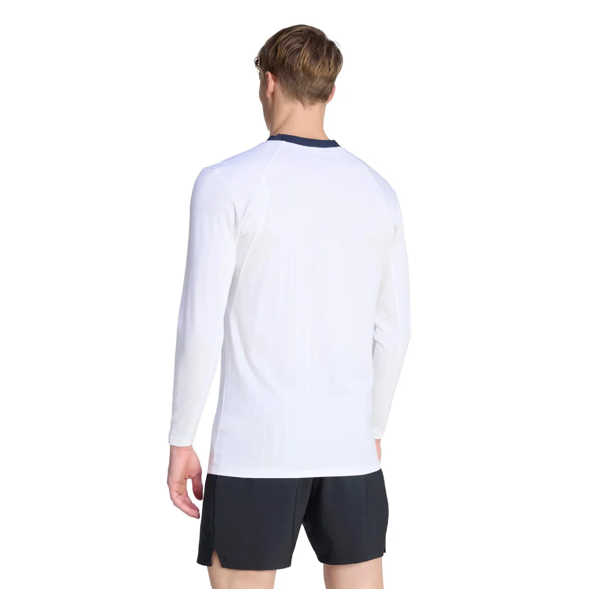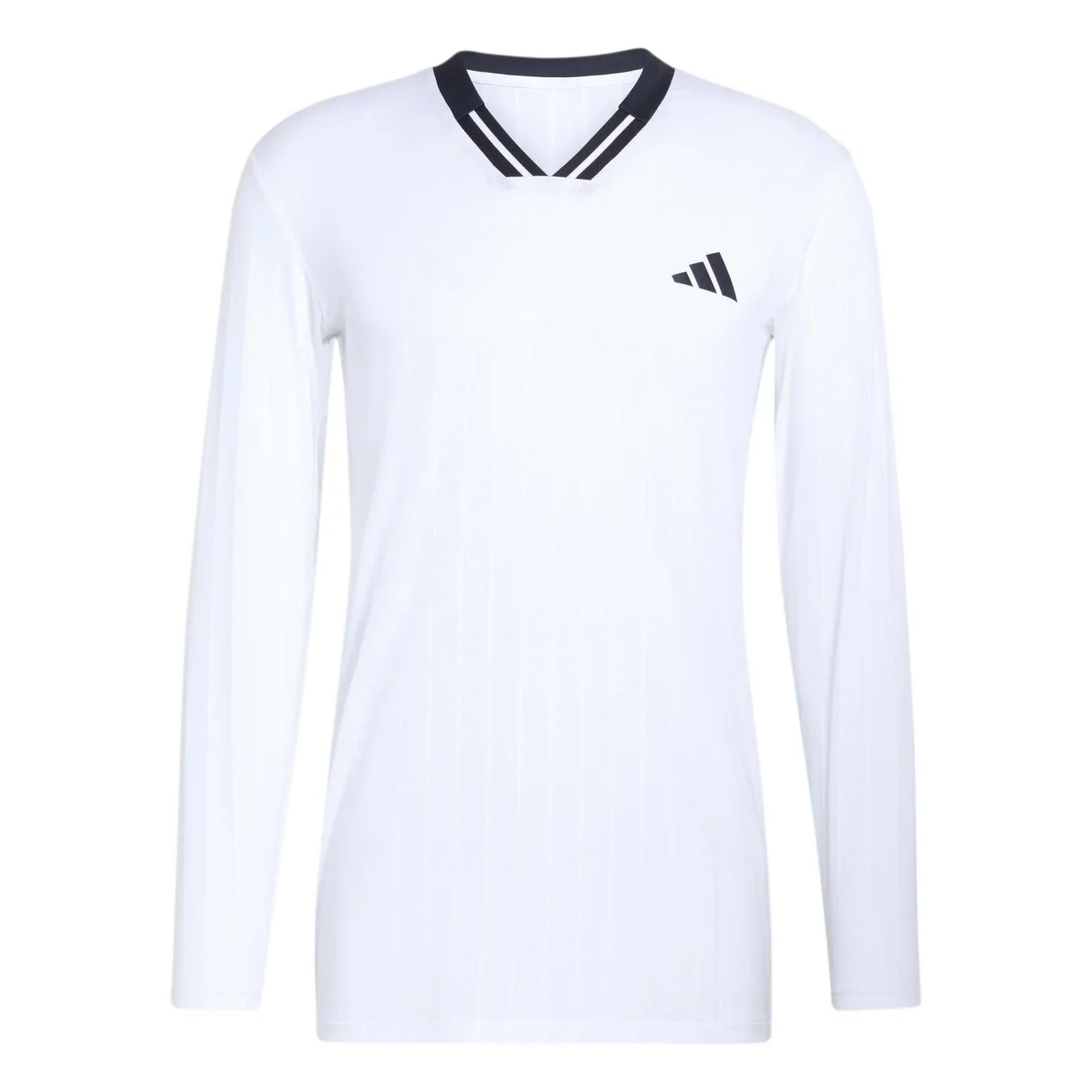 Gör dig redo för tennisbanan med Wow Top Longsleeve Långärmat Herrar från adidas. Den här tröjan är inte bara stilren utan också tillverkad med hållbarhet i åtanke, bestående av 85% återvunnen polyester och 15% elastan. Det stretchiga materialet ger utmärkt rörlighet under varje serve och volley, samtidigt som det håller dig bekväm på planen. Med långärmad design kan du hålla värmen under tidiga morgonmatcher eller svala kvällsspel, utan att kompromissa med ditt prestanda.